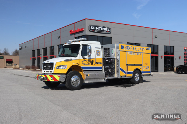tankers! This tanker will find its home in Sturgeon, MO. Boone County FPD covers about 500 square miles or approximately the northern 2/3’s of Boone County excluding the Columbia city limits. This makes them the largest fire district in Missouri! Boone County FPD utilizes 15 stations with 24 paid firefighters and 200 volunteers manning a variety of 60 apparatus. SENTINEL and